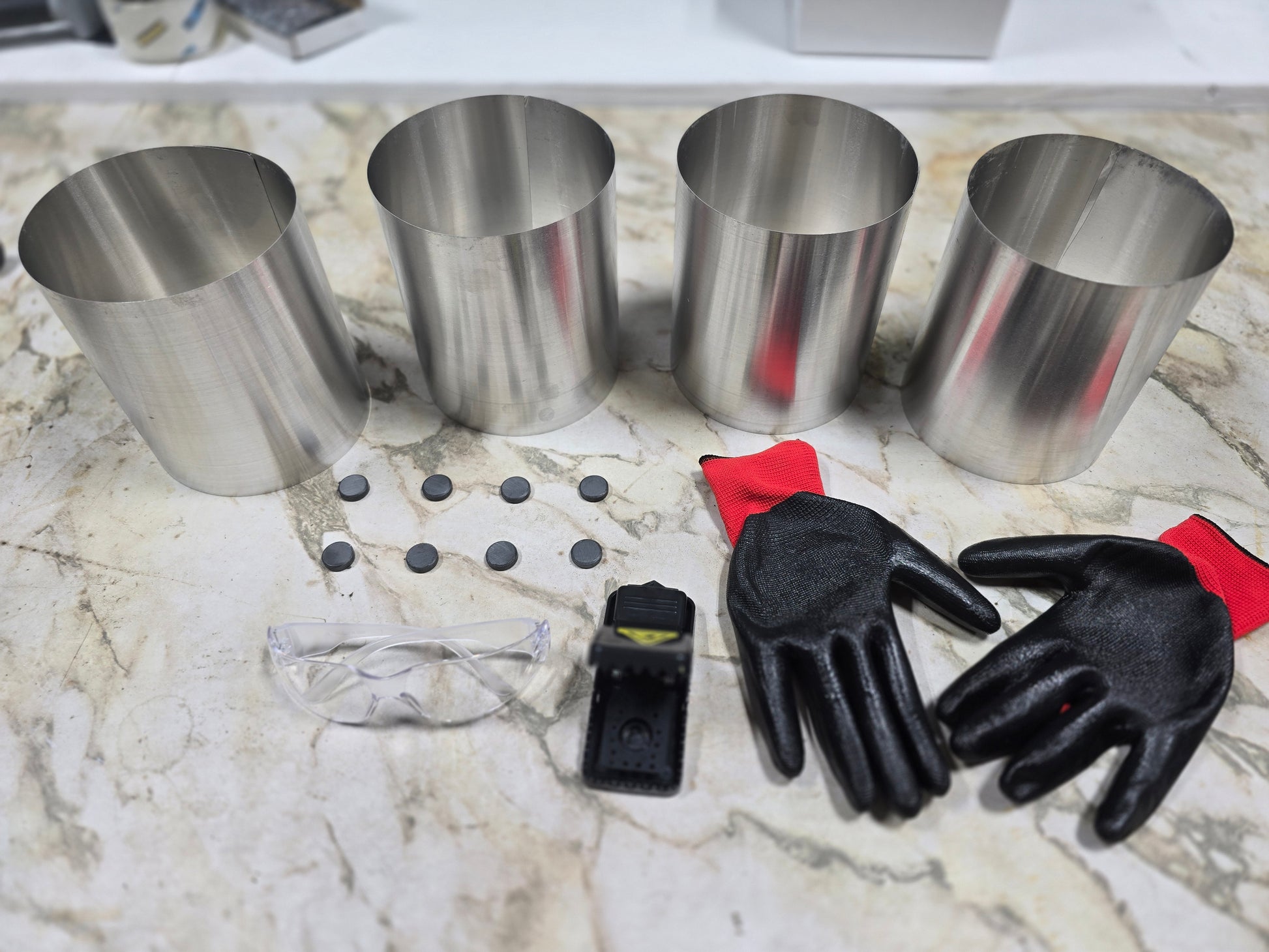 ✅ Includes: Four 6" high single tire rings, one set of gloves, one set of safety glasses, magnets, mouse trap, and instructions.